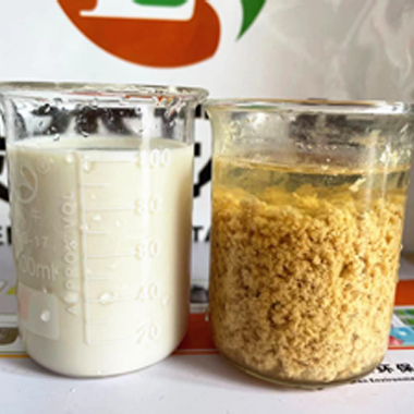 綠森環(huán)保技術(shù)團隊應(yīng)某化妝品客戶要求上門技術(shù)服務(wù),現(xiàn)場給客戶廢水破乳劑中試。客戶廢水:沐浴露廢水,特點:含有乳化劑、增稠劑、抗氧化劑、防腐殺菌劑和香精色素等,廢水顏色:淺黃色。使用破乳劑破乳后廢水上清液清澈透明,如下圖       &nbs···